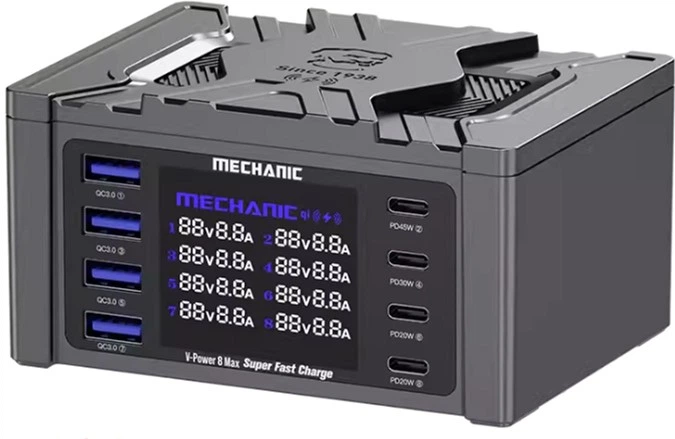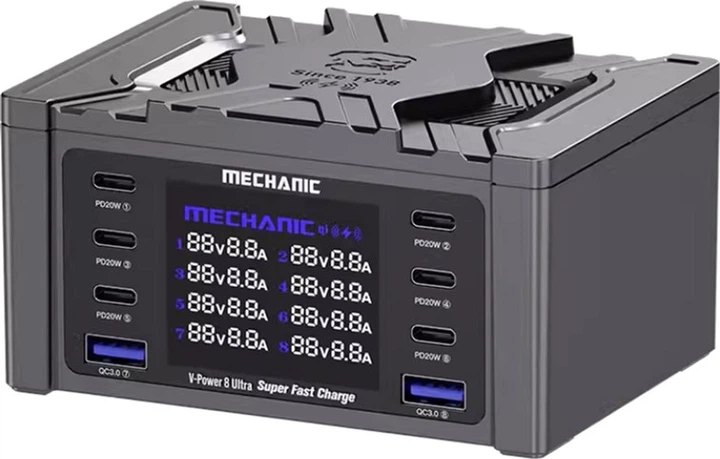 Зарядна станція з цифровою індикацією Mechanic V-Power 8 Ultra, 2xQC3.0-5В3А, 9В2A, 6xPD3.1- (5В/9В/12В/15В) 3А, 20В2, 25A,