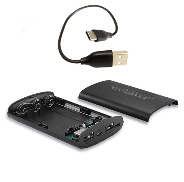 Power Box 3 - корпус для павербанку 10000mAh 5V 2.4A 2USB, Micro-USB, Type-C, кейс для збирання powerbank на 3 слоти + Кабел