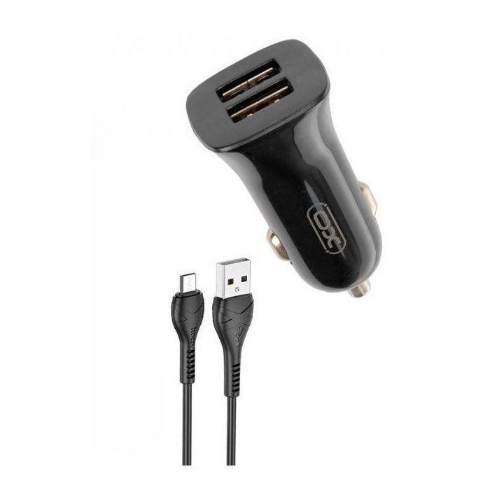 Автомобільний зарядний пристрій XO TZ09 (2USB, 2.4A) Black (6920680873487) + кабель microUSB 6920680873487