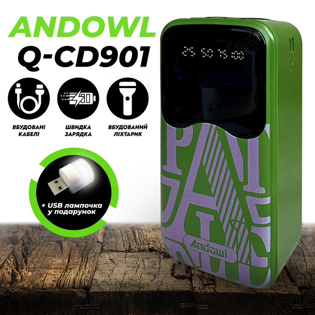 УМБ Повербанк 40000 mah Andowl Q-CD901X1 Power Bank зовнішній акумулятор для дому павербанк портативна батарея зелений + Под