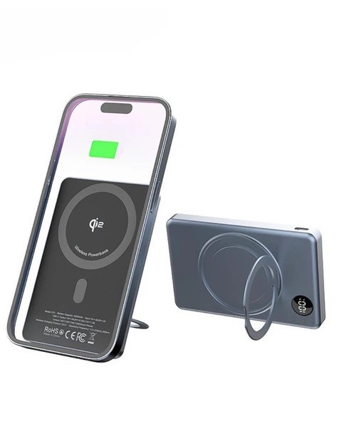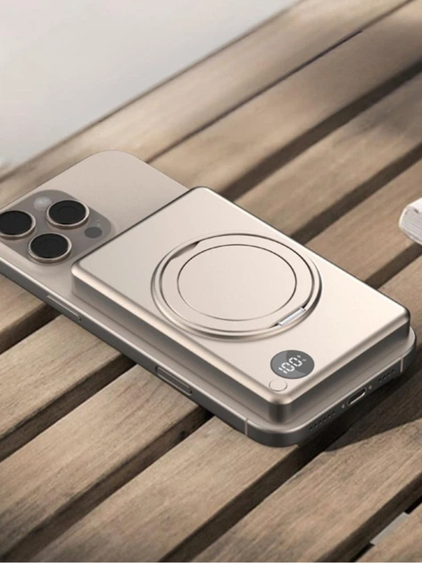 Магнітний Qi2 Power Bank 5000 мА·год з алюмінію повербанк з бездротовою зарядкою 15 Вт, підставкою та тримачем для телефону