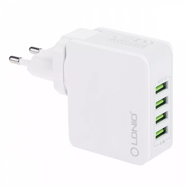 Зарядний пристрій LDNIO A4403, 220V, 4xUSB 5V/4.4A, білий, без кабелю