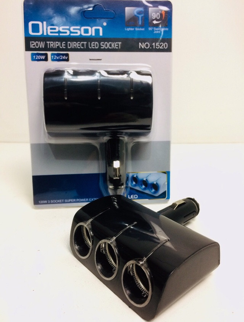 Автомобільний розгалужувач прикурювача Olesson 3 гнізда з прямим підключенням 12v-24v Чорний