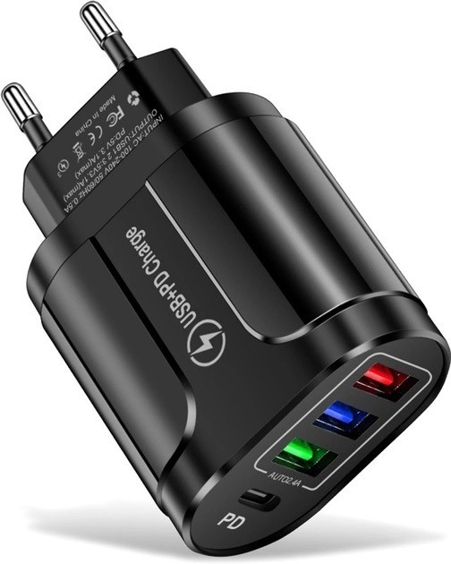 Зарядний пристрій TRw 3 USB Type-C Super Charge/Quick Charge 3.0 5V/2.4A Black (HbP050557)