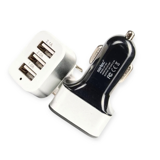 Зарядний пристрій від прикур. Sertec 3USB, 3.1А прямокут. чорний, білий, Євро