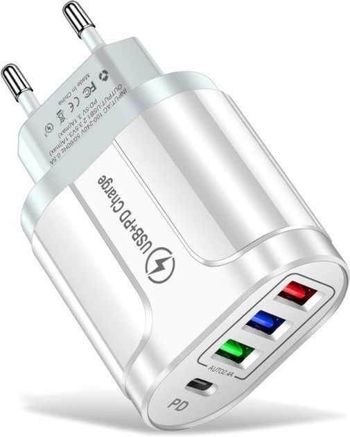 Сітчастий зарядний пристрій XO (3USB-С, 3USB, 3 А) PD, QC 3.0 Білий