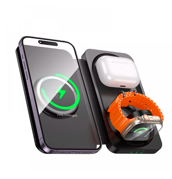 Док-станція 3 в 1 для телефонів, для Apple Watch, для AirPods з MagSafe Бездротова зарядка Wireless Charger Hoco CQ13 Black