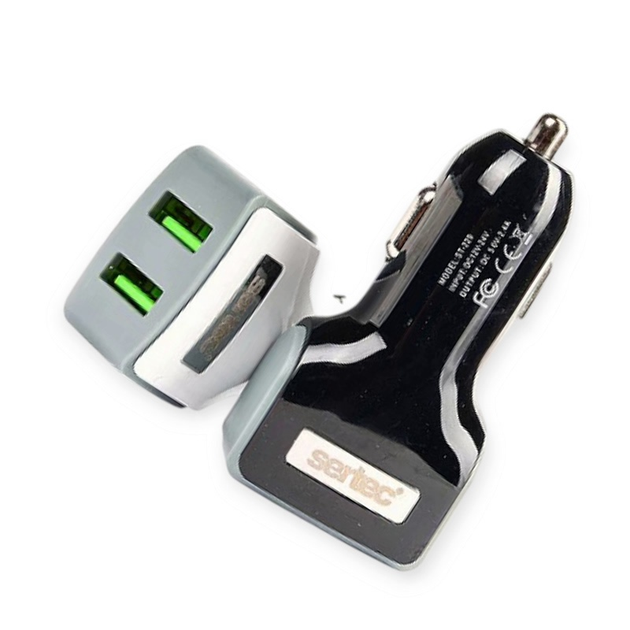 Зарядний пристрій від прикур. Sertec 2USB, 2.1А прямокут. чорний, білий, Євро