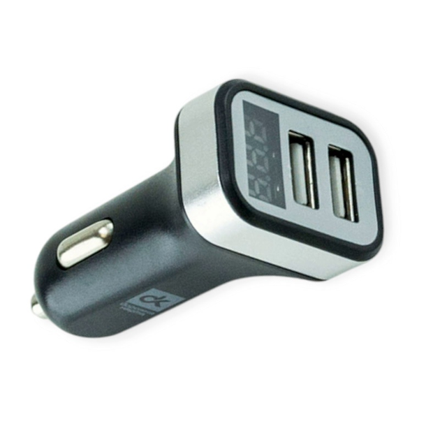 Зарядний пристрій від прикур. Dk 2USB 2.1А прямокут. чорний, LED дисплей, В-метр, А-метр, Євро