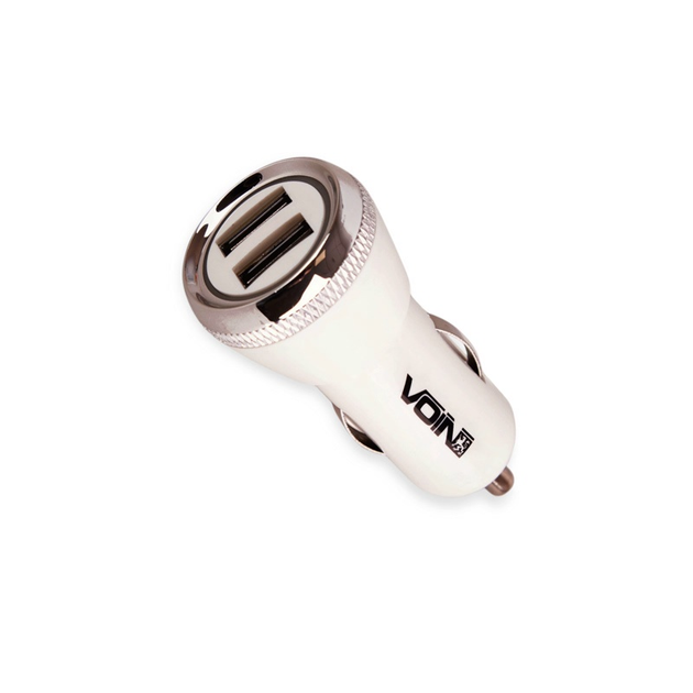 Зарядний пристрій від прикур. Voin 2USB 2.4А овальний білий, Євро