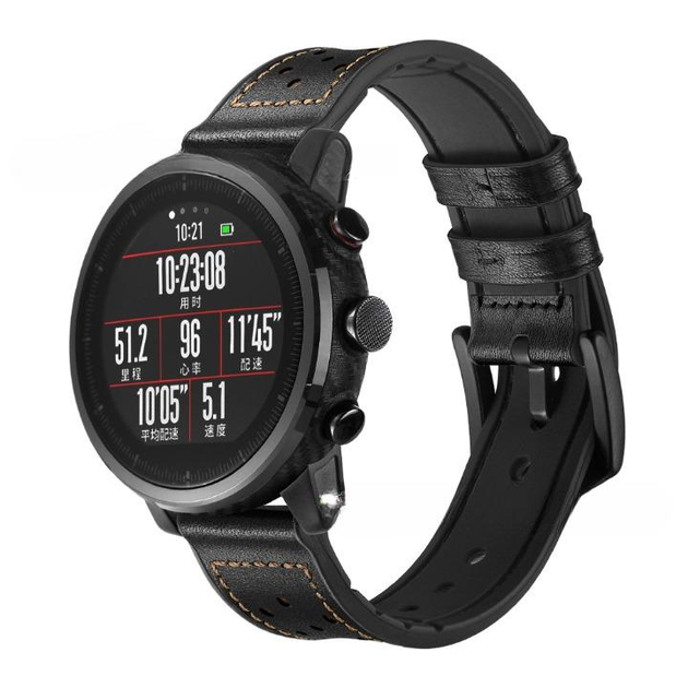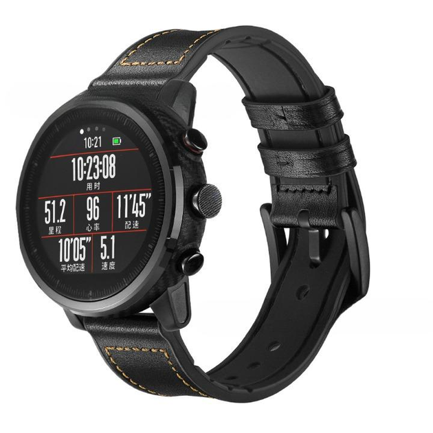 Шкіряний / силіконовий 22мм Youth Version для Amazfit GTR 2 Pace Stratos / Huawei Watch GT 2 / Samsung Gear S3 - Чорний (219