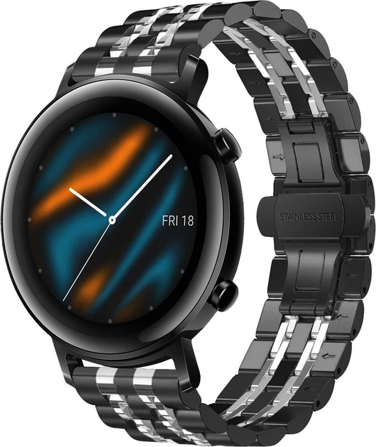 Металевий Браслет Spinye Line для Huawei Watch GT 2 42mm Black Silver (29019-03)