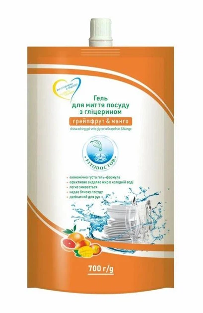 Гель для миття посуду FITODOCTOR «Грейпфрут & Манго» з гліцерином (дой-пак) 700 г