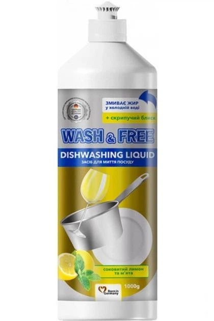 Засіб для миття посуду Wash&Free 500гр Соковитий лимон та мята
