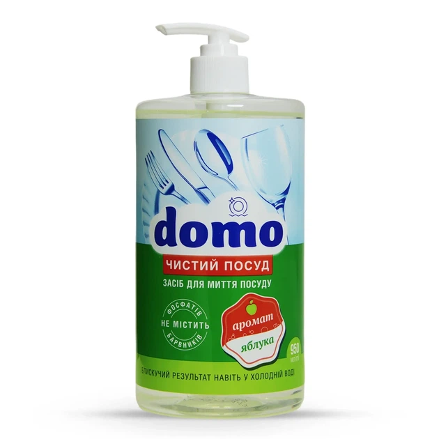 Засіб для миття посуду DOMO БЕЗФОСФАТНЕ Яблуко помпа 950 мл