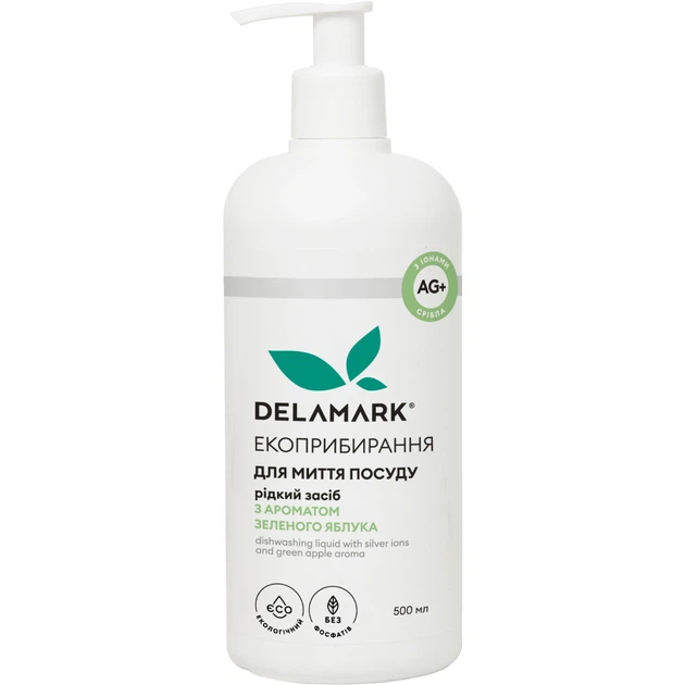 Засіб для ручного миття посуду DeLaMark з іонами срібла Зелене яблуко 500 мл (4820152331021)