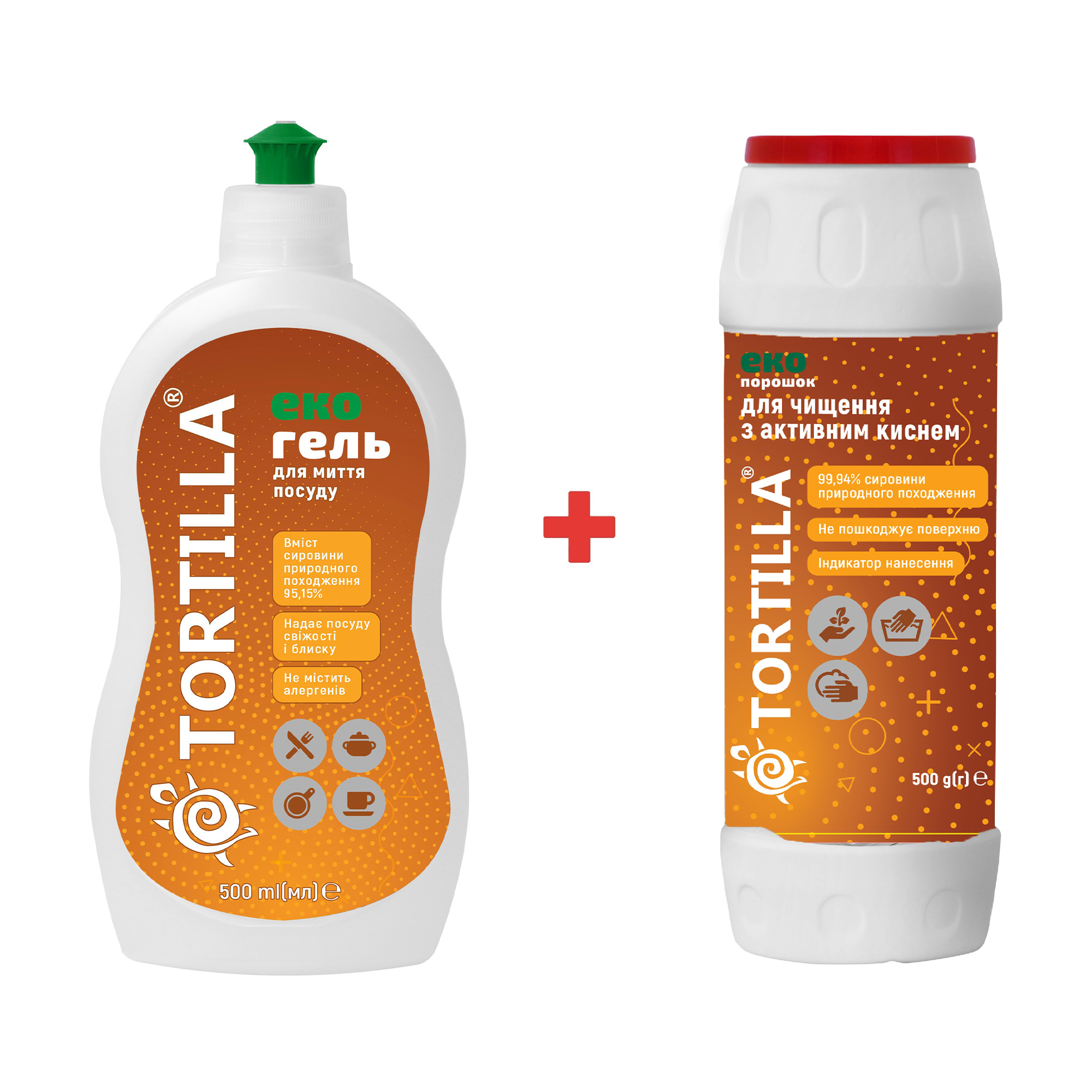 Набір для миття посуду Tortilla ЕКО (гель, 500 мл + порошок для чищення, 500 г)