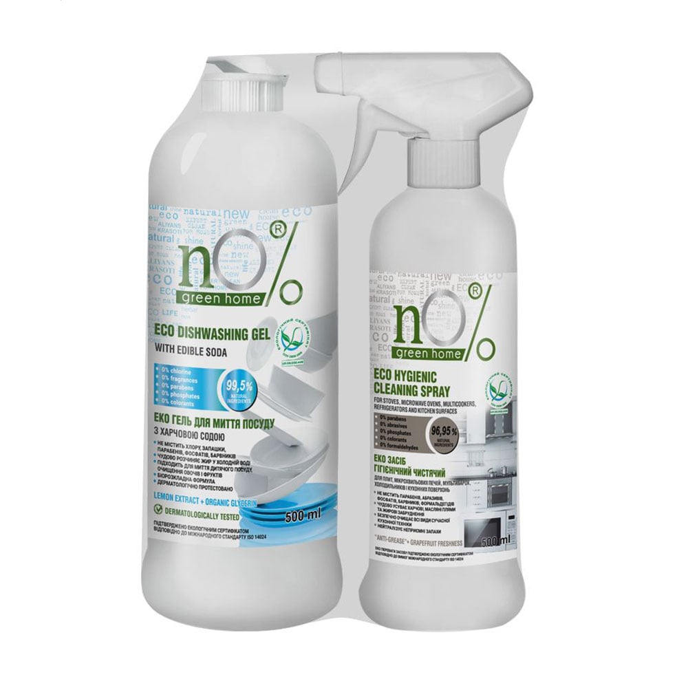 Набір nO green home (еко-гель для миття посуду, 500 мл + еко-засіб гігієнічний чистячий, 500 мл)