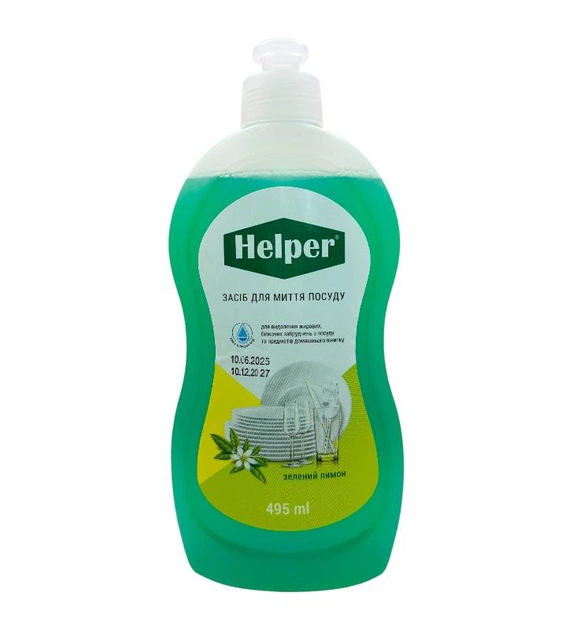 Засіб миючий для посуду Зелений лимон Helper 500 г.