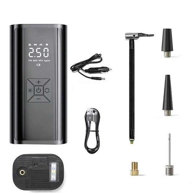 Акумуляторний насос-компресор 2в1 з LED-дисплеєм і акумулятором 6000 мА·год для шин і велосипедів