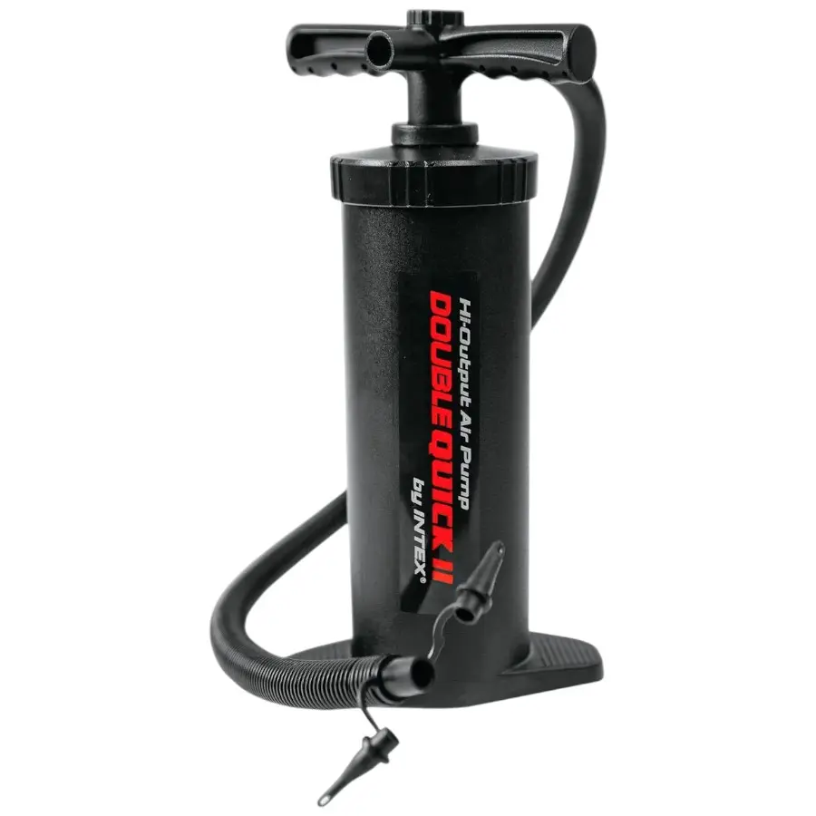 Комплектація: насос, 3 насадки Вага: 749г Висота: 36 см Цей насос надуває і при підйомі, і при опусканні ручки. Ручний насос незалежний від електрики, що дозволяє взяти його з собою в похід або на дачу. Підходить для всіх надувних виробів Intex.