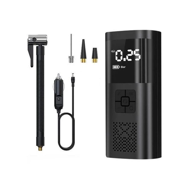 Портативний компресор з цифровим дисплеєм, LED-ліхтариком та набором насадок ATJ-9566 3х2000mAh