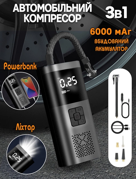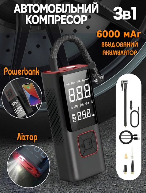 Автокомпресор Usams U6988 акумуляторний автомобільний компресор з дисплеєм, ліхтарем та функцією Powerbank