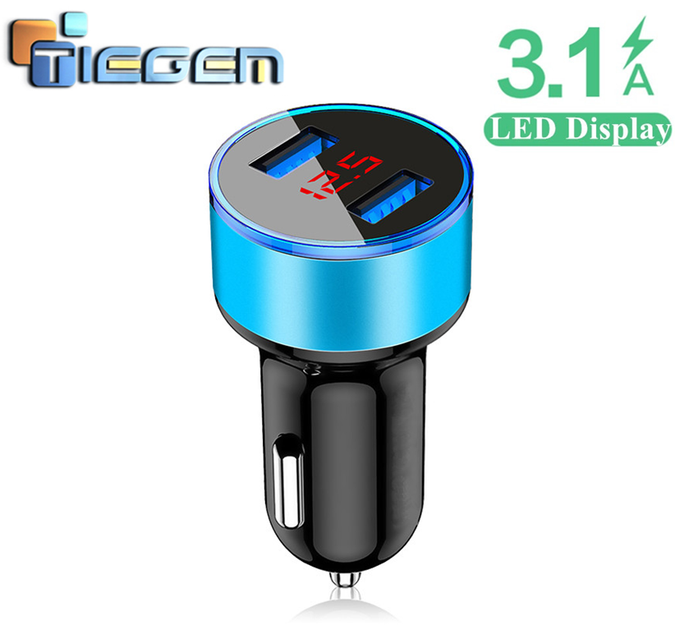 Автомобільний зарядний пристрій 3.1A LED 2 USB порти. Зарядка в машину від прикурювача для телефону DV73E