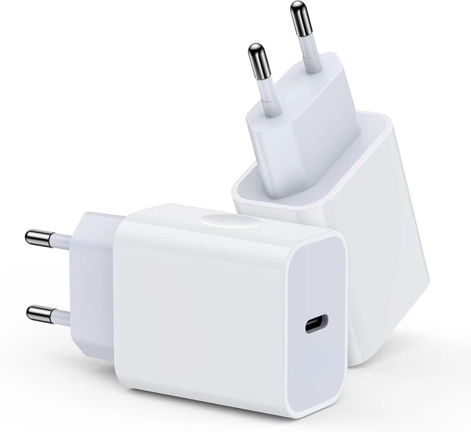 Європейський дорожній адаптер живлення USB-C потужністю 20 Вт 2шт + кабель 2шт