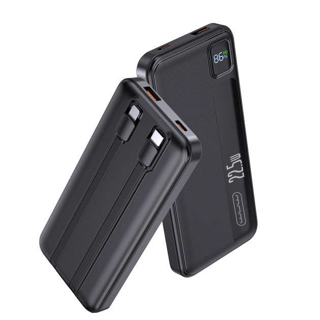 Power bank WUW Y139 10000 mAh зі швидкою зарядкою, дисплеєм та вбудованими кабелями Black