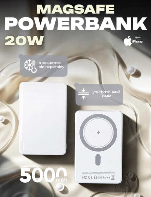 Magsafe магнітний бездротовий повербанк портативний для apple айфона iphone 12-17 тонкий MAGPRO ultraslim QINETIQ 5000 mah 2