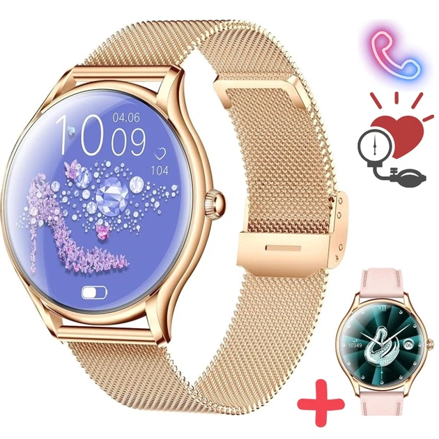 Смарт-годинник жіночий VALDUS VL55 Pro Gold (розмова, тонометр, пульсоксиметр) Amoled екран, 2 ремінці