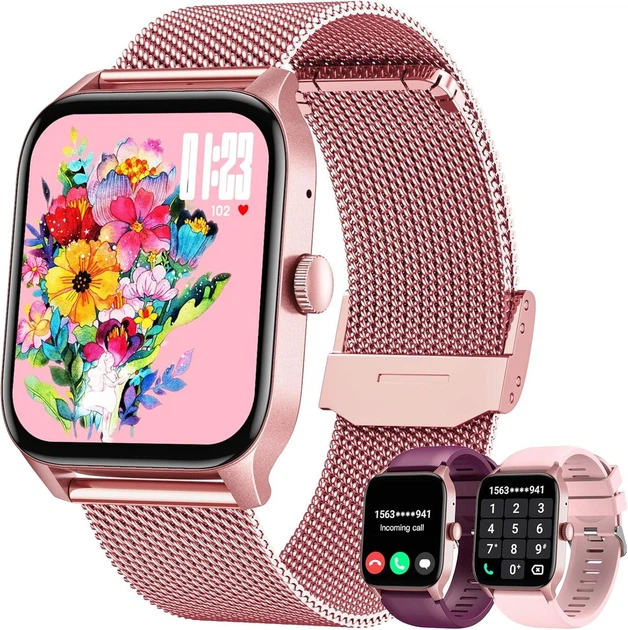 Розумний годинник для жінок Android IOS телефони: рожевий розумний годинник для жінок 1,83 дюйма Rose Gold