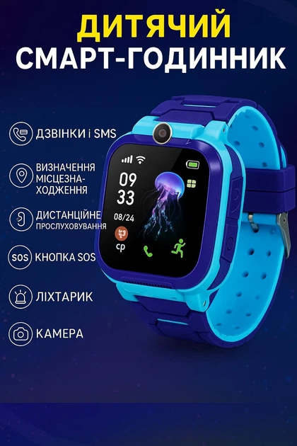 Смарт годинник дитячий розумний для дітей дитини смартгодинник smart watch смартвотч з трекером Q12 baby watch blue з сім ка
