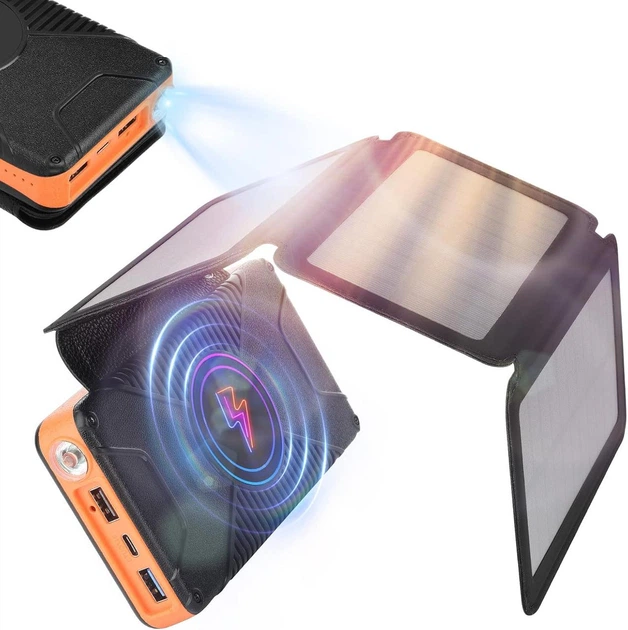 Портативний зарядний пристрій Повербанк PowerBank на Сонячній Батареї 26800 мАг PD18W Qi10W