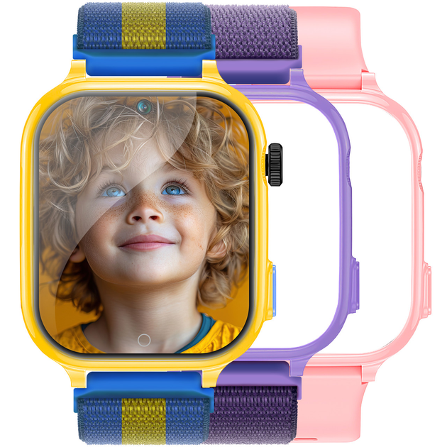 Дитячий смарт годинник JETIX G100 4G зі змінним корпусом для дівчинки (у комплекті Рожевий, Бузковий, Жовто-синій)