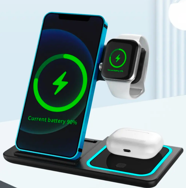 Зарядна станція 3 в 1 підставка для швидкого бездротового зарядного пристрою швидка бездротова зарядка захист від перевантаж