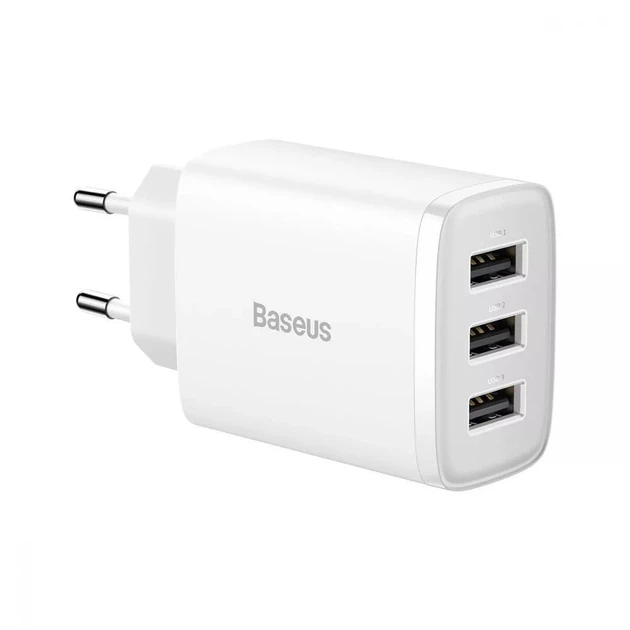 Блок живлення Швидка зарядка Мережевий зарядний пристрій Baseus Compact 17W 3 USB White