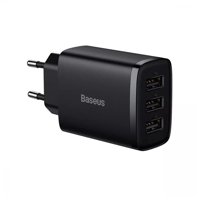Блок живлення Швидка зарядка Мережевий зарядний пристрій Baseus Compact 17W 3 USB Black