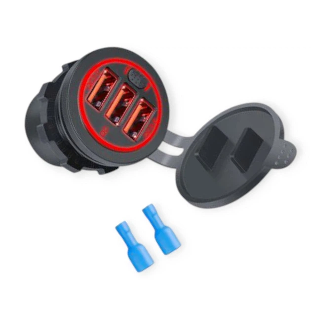 Гніздо врізне 3 USB 3,0А, QC 12-24В, кришка, з підсвічуванням червоним та кнопкою ON, OFF