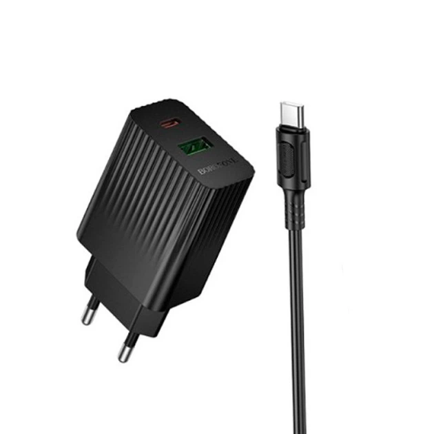 Сіткова зарядка BOROFONE BAS61A Smart PD30W+QC3.0 + Cable Type-C to Type-C чорний
