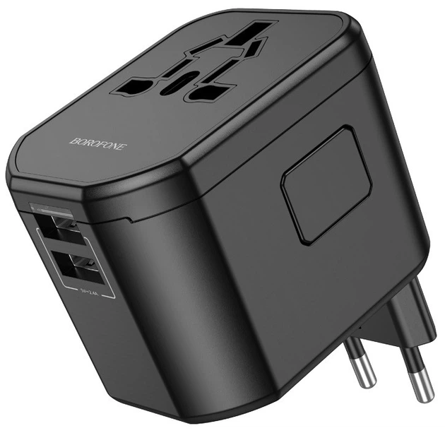 Мережевий зарядний пристрій BOROFONE BAC1 перехідник універсальний EU/UK/US/AUS Чорний