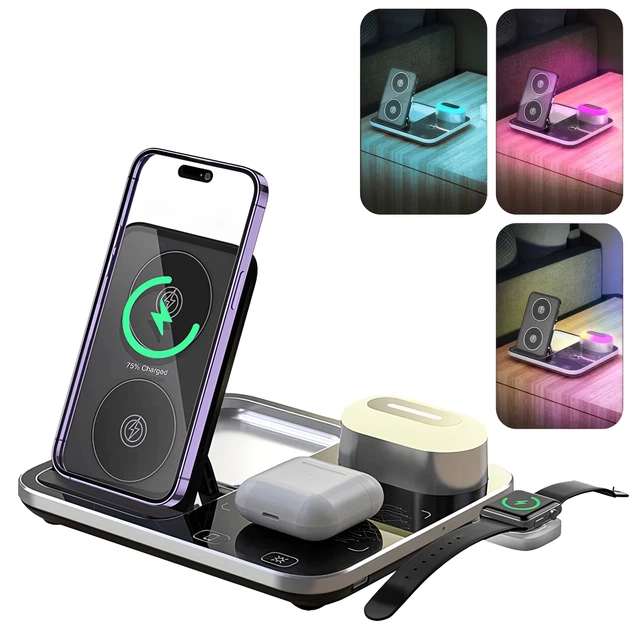 Бездротова зарядка 3 в 1 з потужністю 15 Вт для телефону, годинника та навушників.