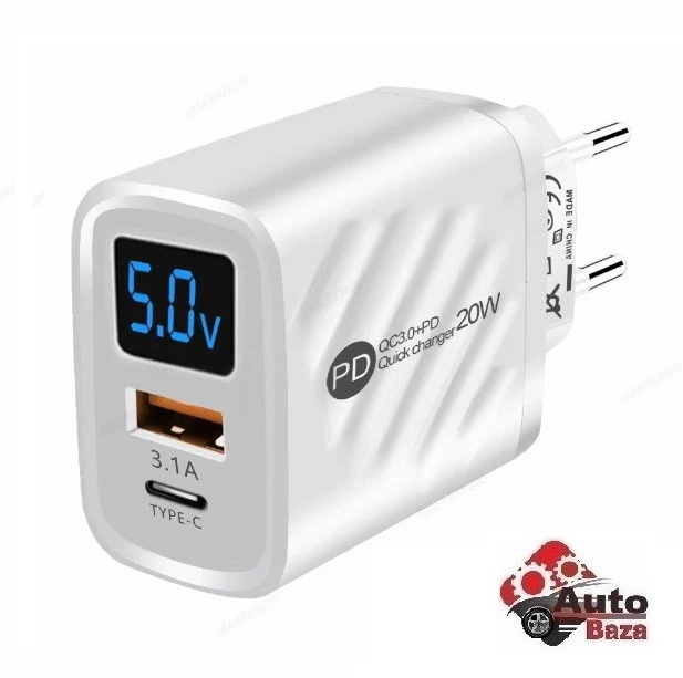 Мережевий зарядний пристрій з швидкою зарядкою 2 USB порта Quick Charge 5V 3.1A з вольтметром дисплеєм