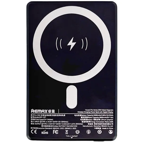 Ультратонкий повербанк Remax 5000 мАг 20W з безпровідною зарядкою MagSafe RPP-107 Чорний