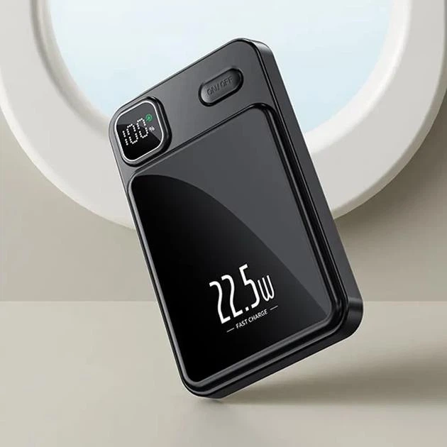 Power Bank 10000 мА·год з бездротовою зарядкою 22.5W, MagSafe, QC 3.0, Type-C, швидка зарядка, чорний