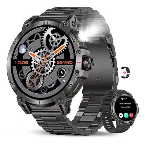 Смарт-годинник чоловічий тактичний для айфона андроїду, військовий смарт-годинник із ліхтариком