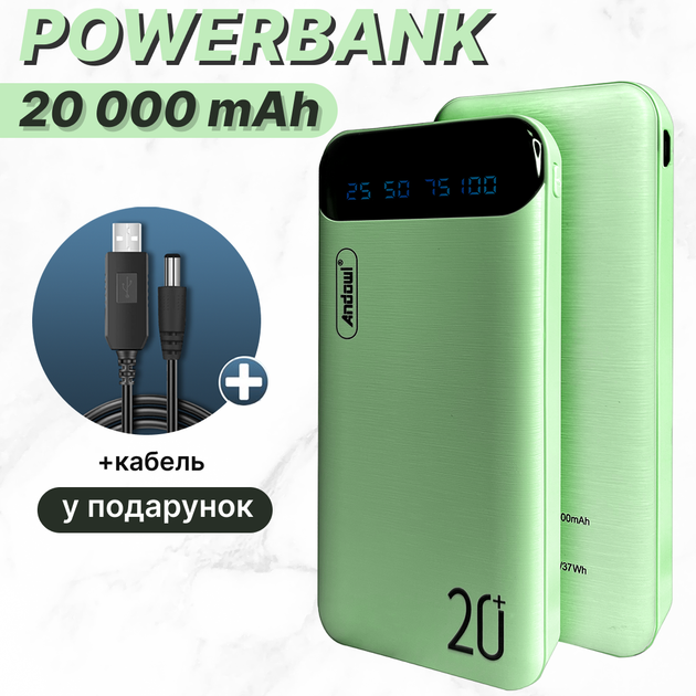 УМБ Power Bank Andowl Q-CD223Х1 20000 mAh QC 3.0 Зовнішній акумулятор із швидкою зарядкою Зелений (повер банк, портативна ба