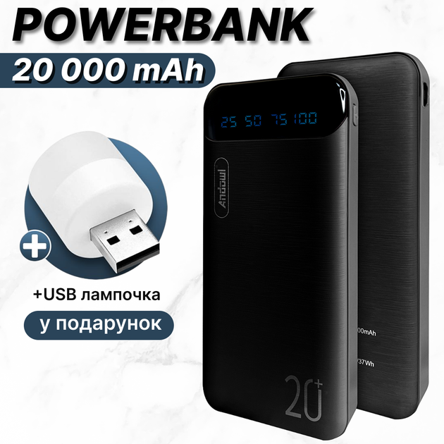 УМБ Power Bank Andowl Q-CD223Х1 20000 mAh QC 3.0 Зовнішній акумулятор із швидкою зарядкою Чорний (повер банк, портативна бат