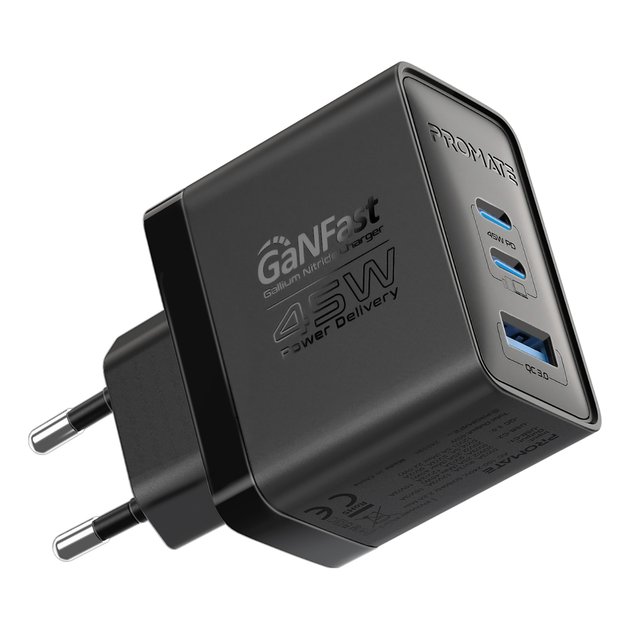 Зарядний пристрій Promate 45 Вт з технологією GanFast та захистом Smart IC чорний